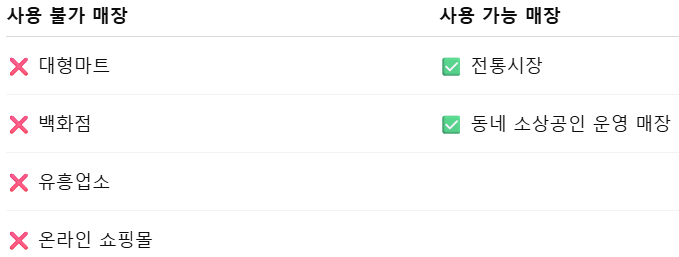 중요합니다. 사용처에 제한이 있어요!