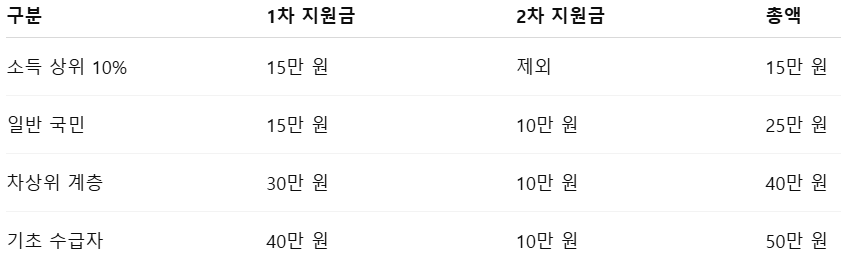 아래 표처럼 소득 수준에 따라 차등 지급됩니다.